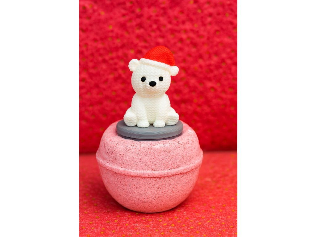 Tato šumivá koupelová bomba s figurkou ledního medvídka v červené vánoční čepičce přináší do koupele nejen nádhernou vůni, ale i pořádnou dávku zimní atmosféry.