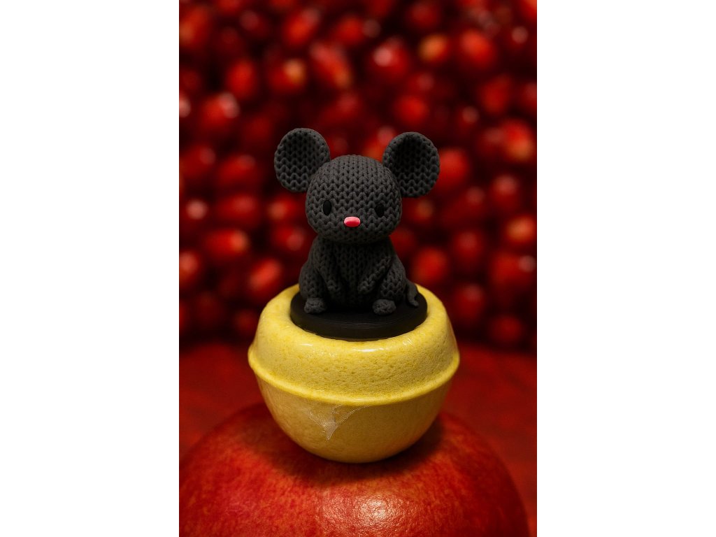 Při kontaktu s vodou se šumivka jemně rozpouští a uvolňuje bohatou pěnu, zatímco PLA figurka myšky je krásnou dekorací – nezapomeňte ji před koupelí vyjmout, není určena do vody.