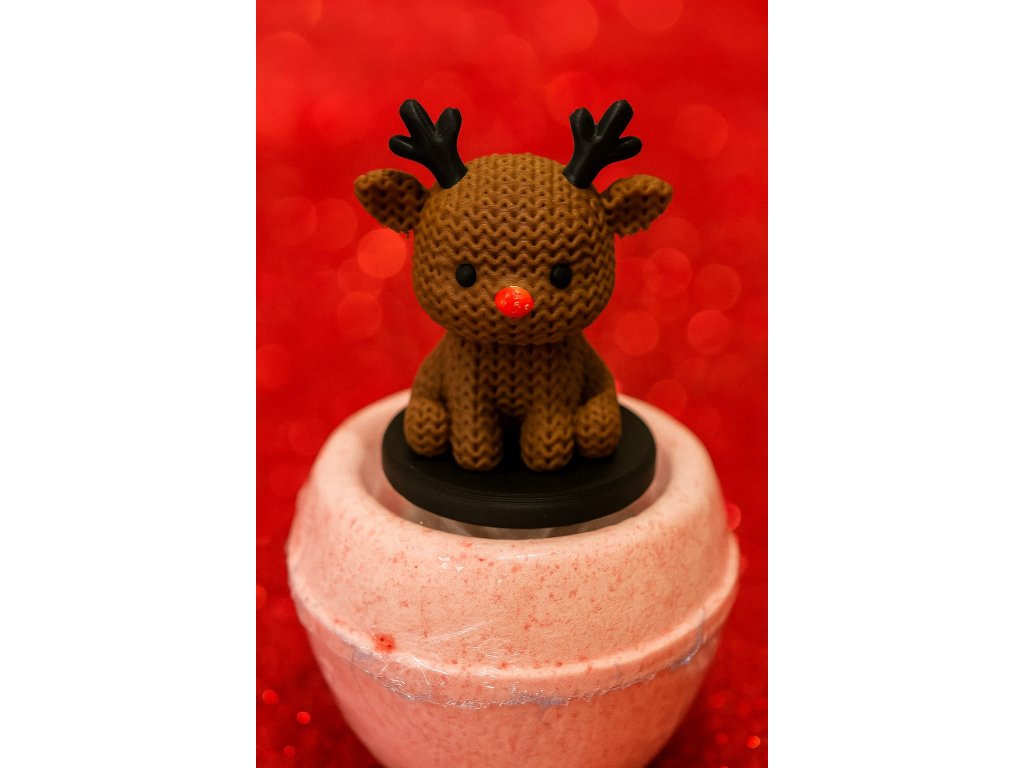 Při kontaktu s vodou se šumivka jemně rozpouští a uvolňuje bohatou pěnu, jemně parfémovanou sladkou jahodou, zatímco PLA figurka sobíka je krásnou dekorací – nezapomeňte ji před koupelí vyjmout,není určena do vody.